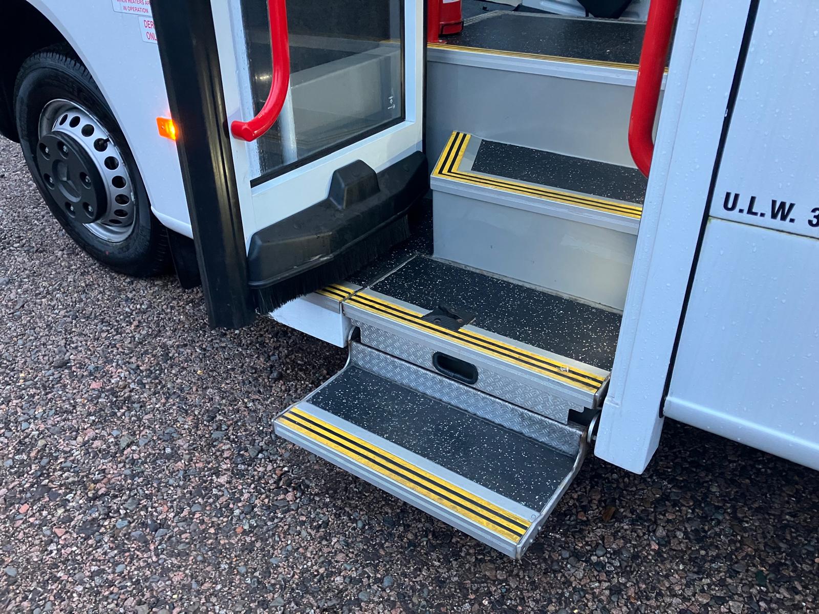 Accessibility: Designed to cater to the needs of wheelchair users and disabled passengers, this coach conversion boasts easy access and manoeuvrability. With its power entry door and underfloor tail-lift, boarding and alighting the vehicle is a breeze.